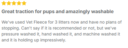 Customer reviews consistently rate Lakeside Products' whelping pads and vet fleece at 5 stars across sizes and colors. Reviewers specifically note: